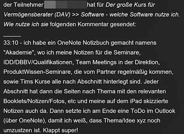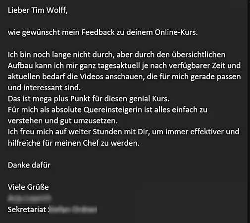 Der Kurs ist voll mit Erklärungen, wie Du Tools wie Loom, AdobeSign usw. im Tagesgeschäft nutzen kannst. Auch hier wirst Du überrascht sein, wie viel Zeit Dir das bringt.